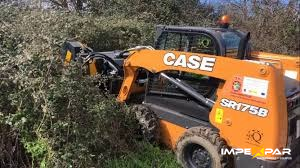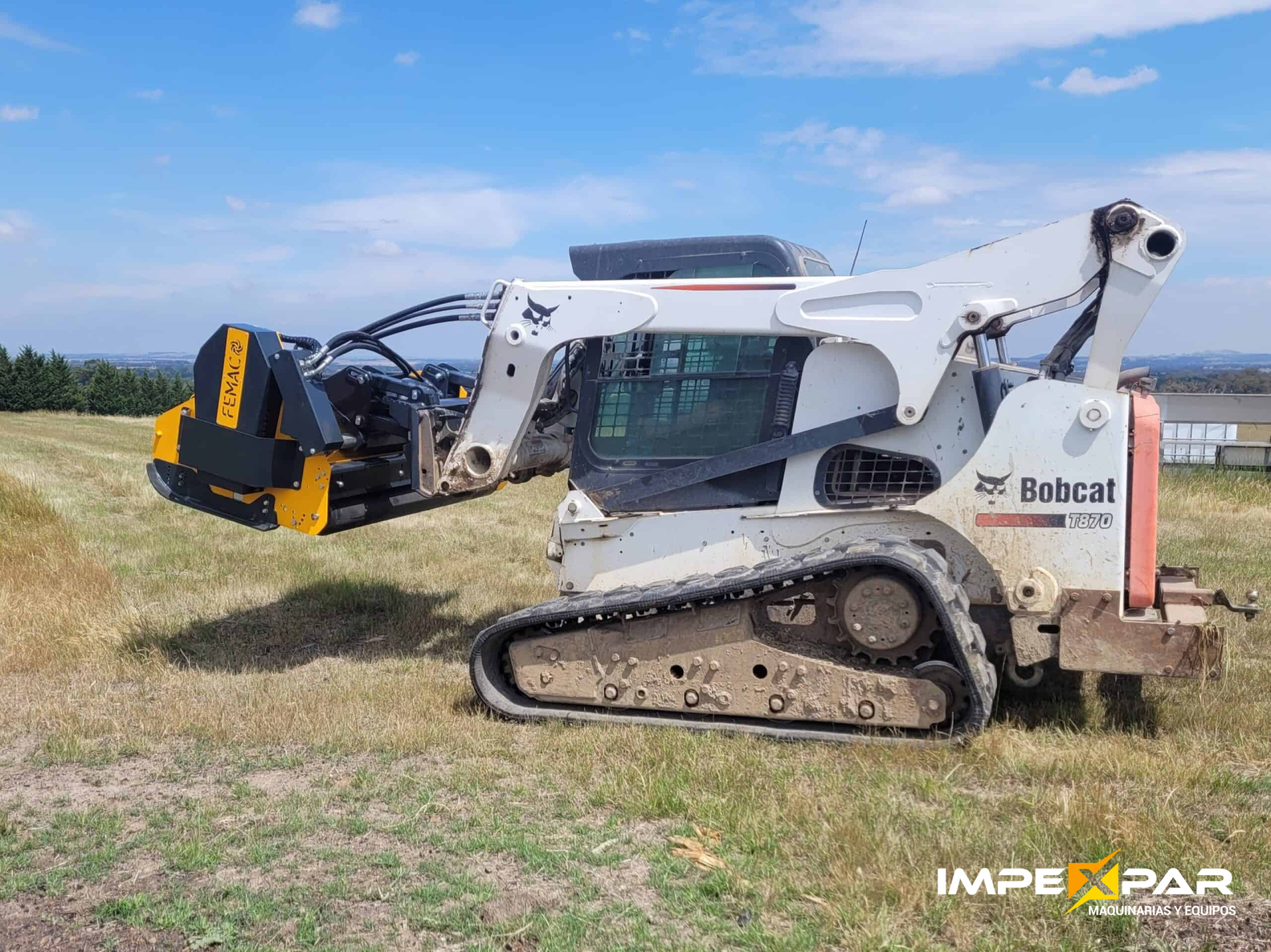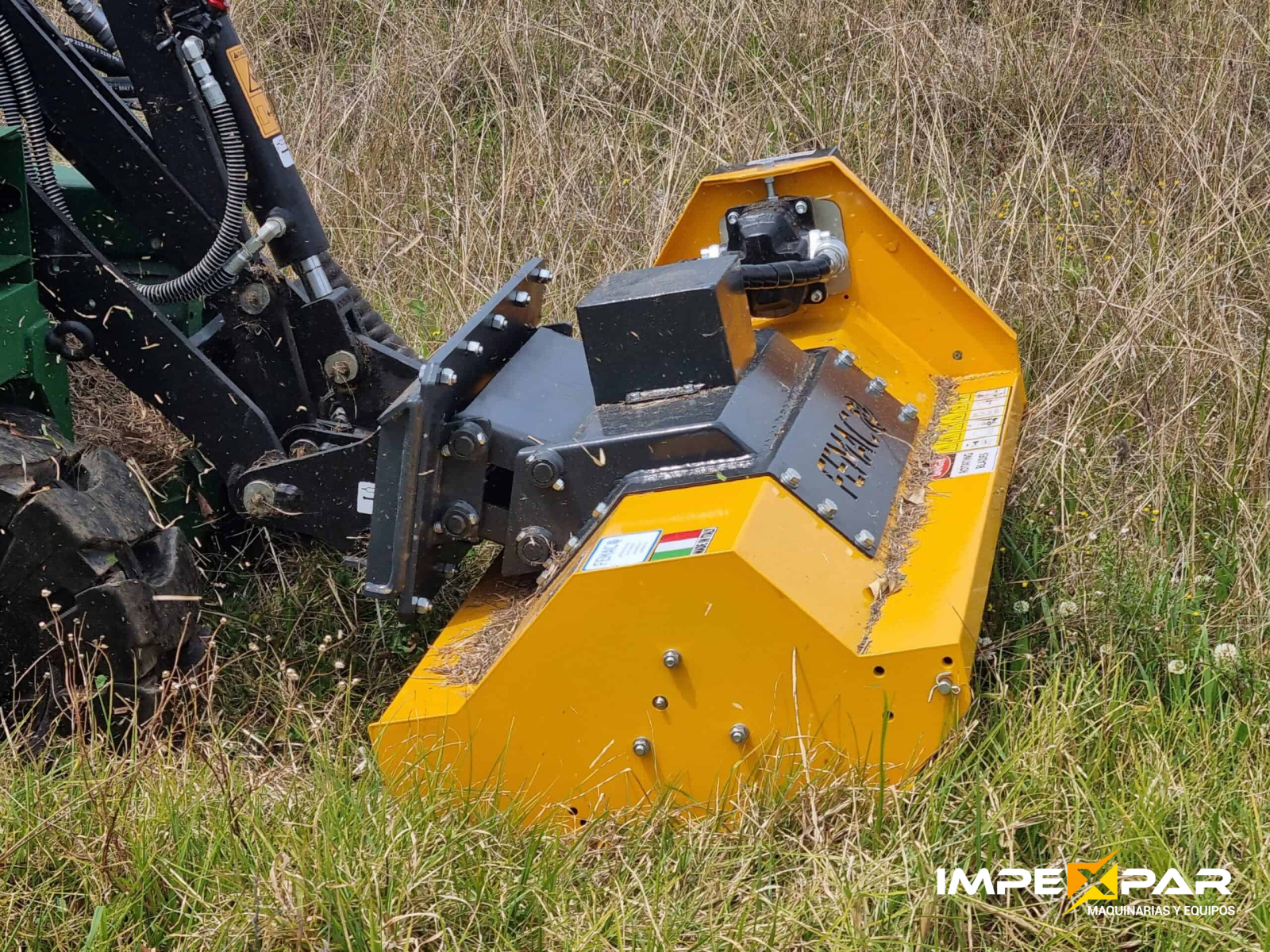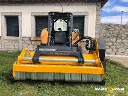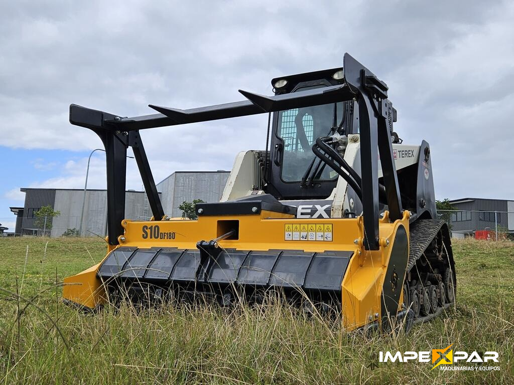 Trituradora hidráulica con enganche universal diseñada para cargadoras de dirección deslizante (Mini Cargadores). Su sistema de nivelación automática la hace perfecta para desbrozar grandes superficies planas con irregularidades.